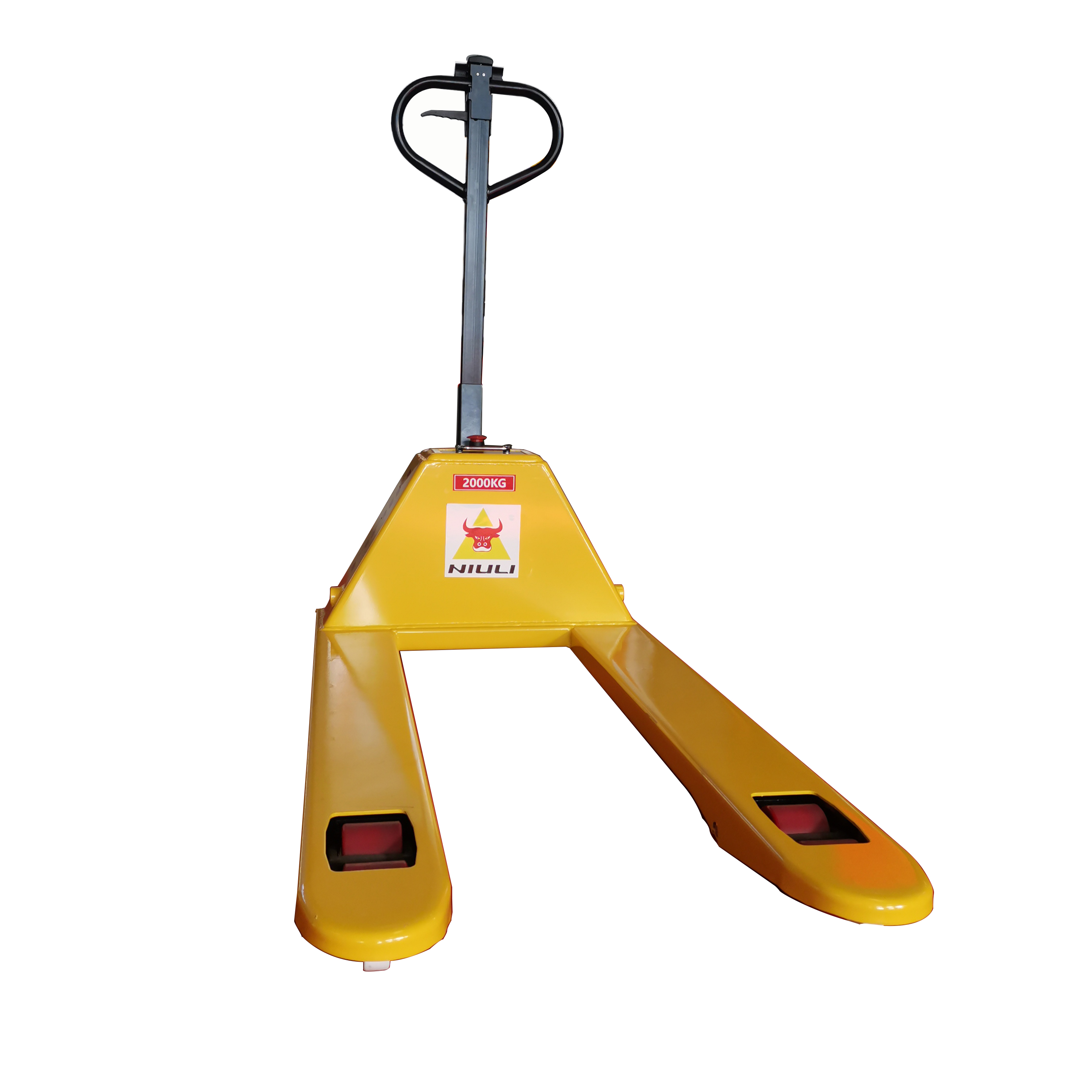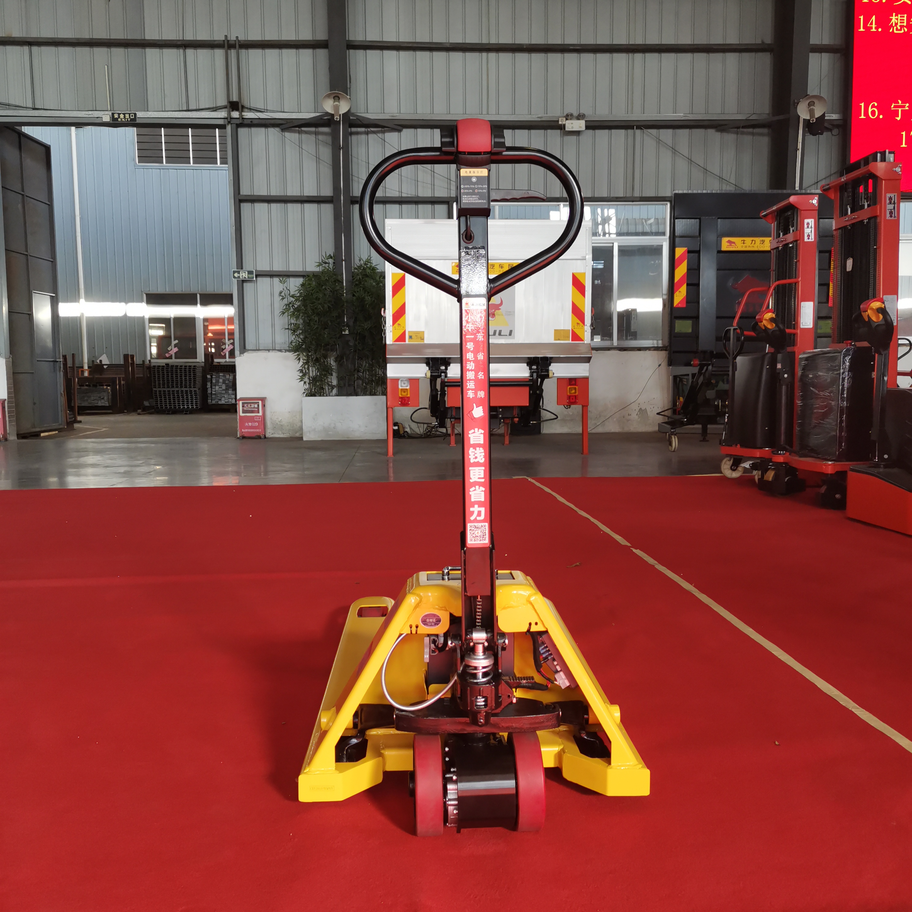 Håndtag kontrol: Nødskiftknap; Batteristrømlys advarer brugeren; Frem- og tilbageknap til bevægelse med batteri; Løft og ned manuelt.