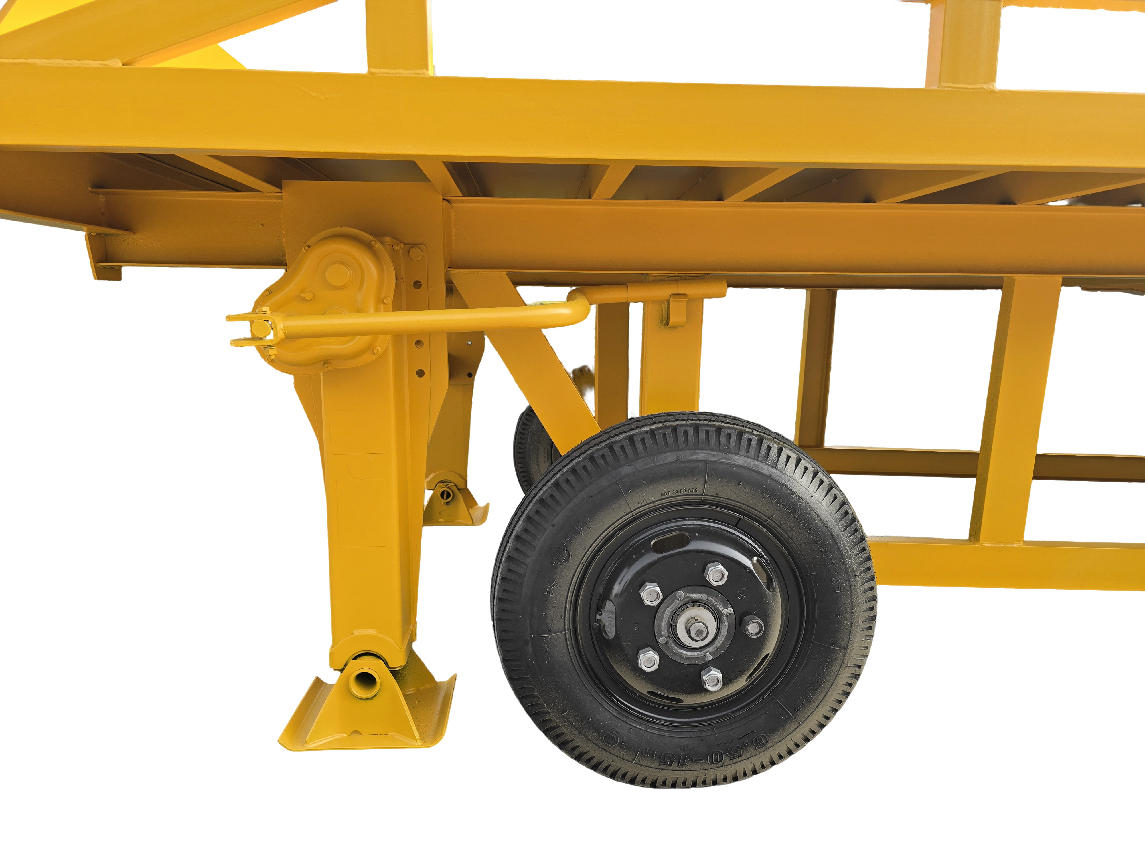 High safety: anti-slip platform, safety chains, side guardrails, wheel brakes.