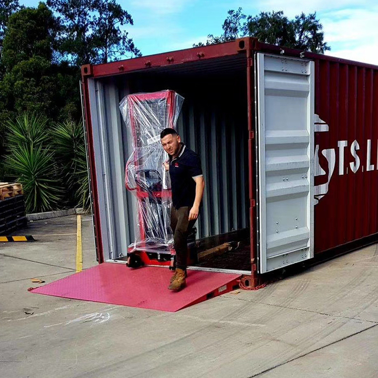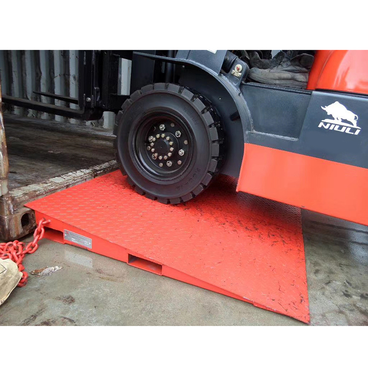 Nakladalna rampa za dostop do zabojnikov Nakladalna rampa za nakladanje zabojnikov se uporablja za nakladanje in razkladanje blaga med tlemi in zabojnikom, na voljo je pet standardnih nakladalnih zmogljivosti za izbirno, 6 ton, 8 ton, 10 ton. Če